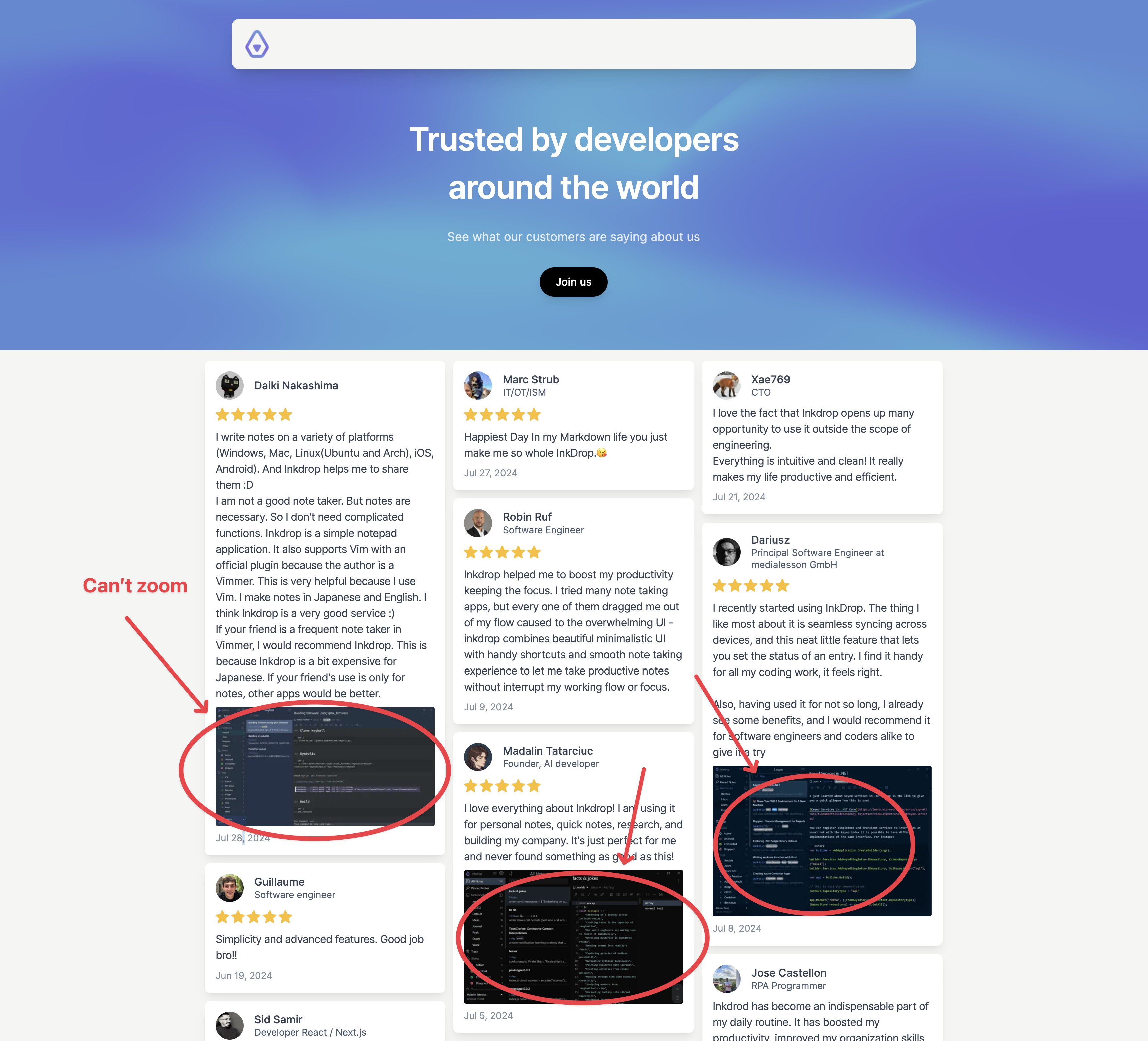 It would be great if the 'wall of love' pages allowed you to zoom in on the attached images. My users have been sharing their lovely screenshots in their reviews.